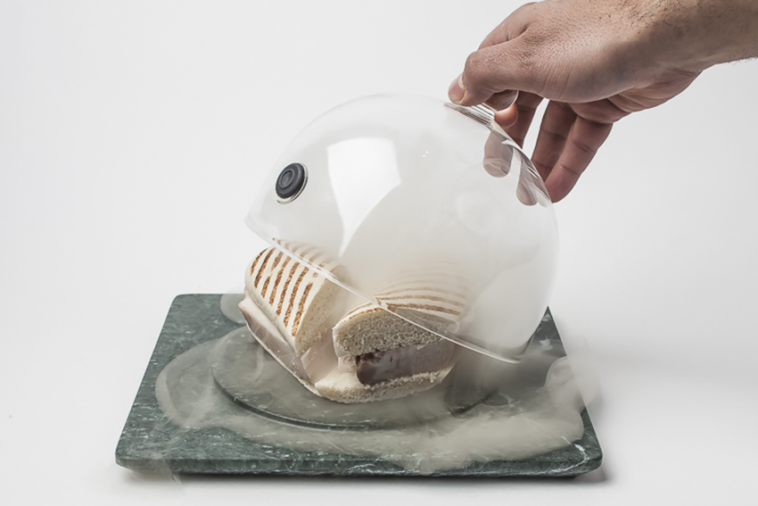 Panceta cocinada a baja temperatura y ahumado en el momento con sarmiento.