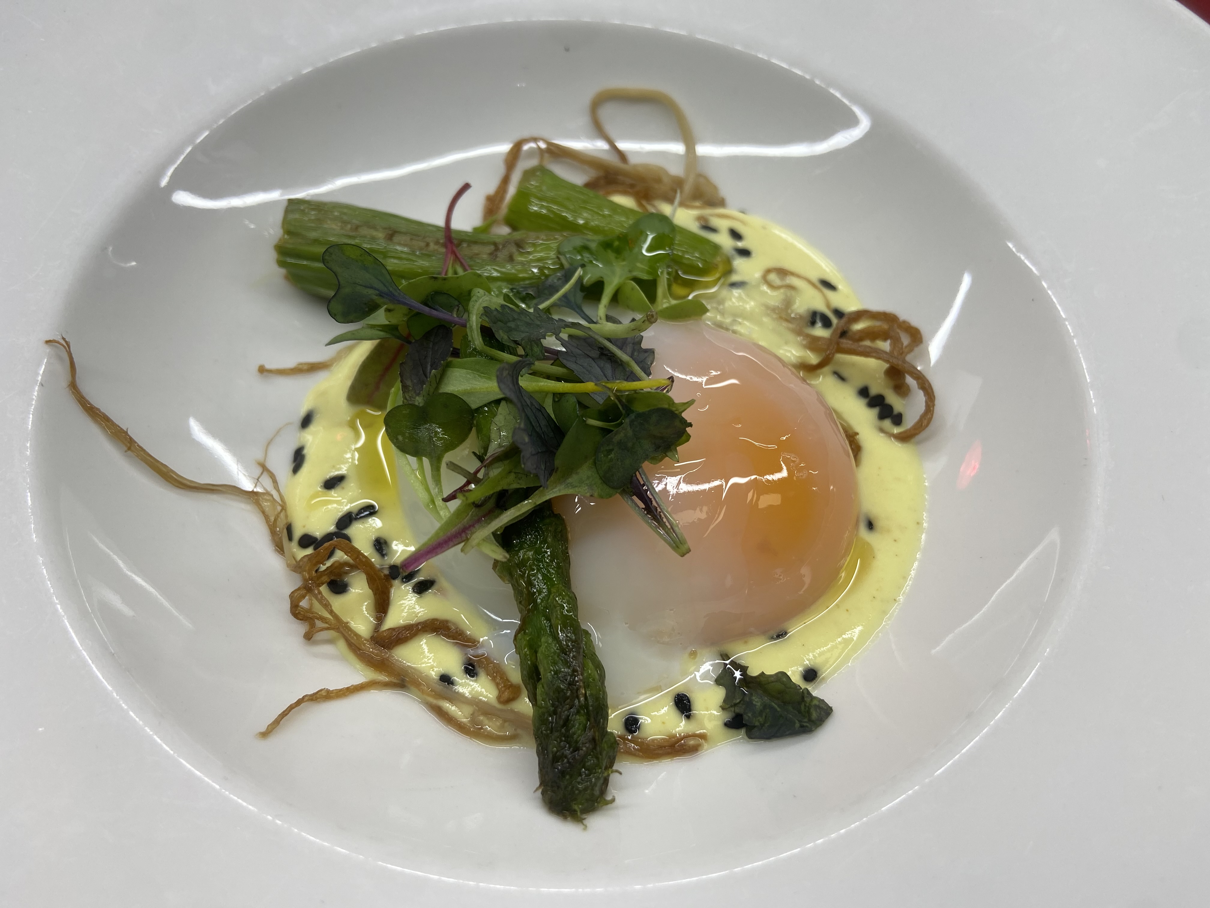 ½ HUEVO A BAJA TEMPERATURA CON QUESO FRESCO ESPECIADO Y TRIGUEROS