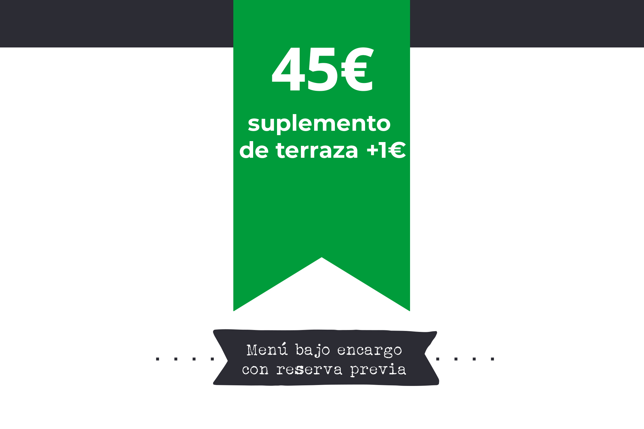 Menú bajo encargo con reserva previa. Suplemento de Terraza +1€