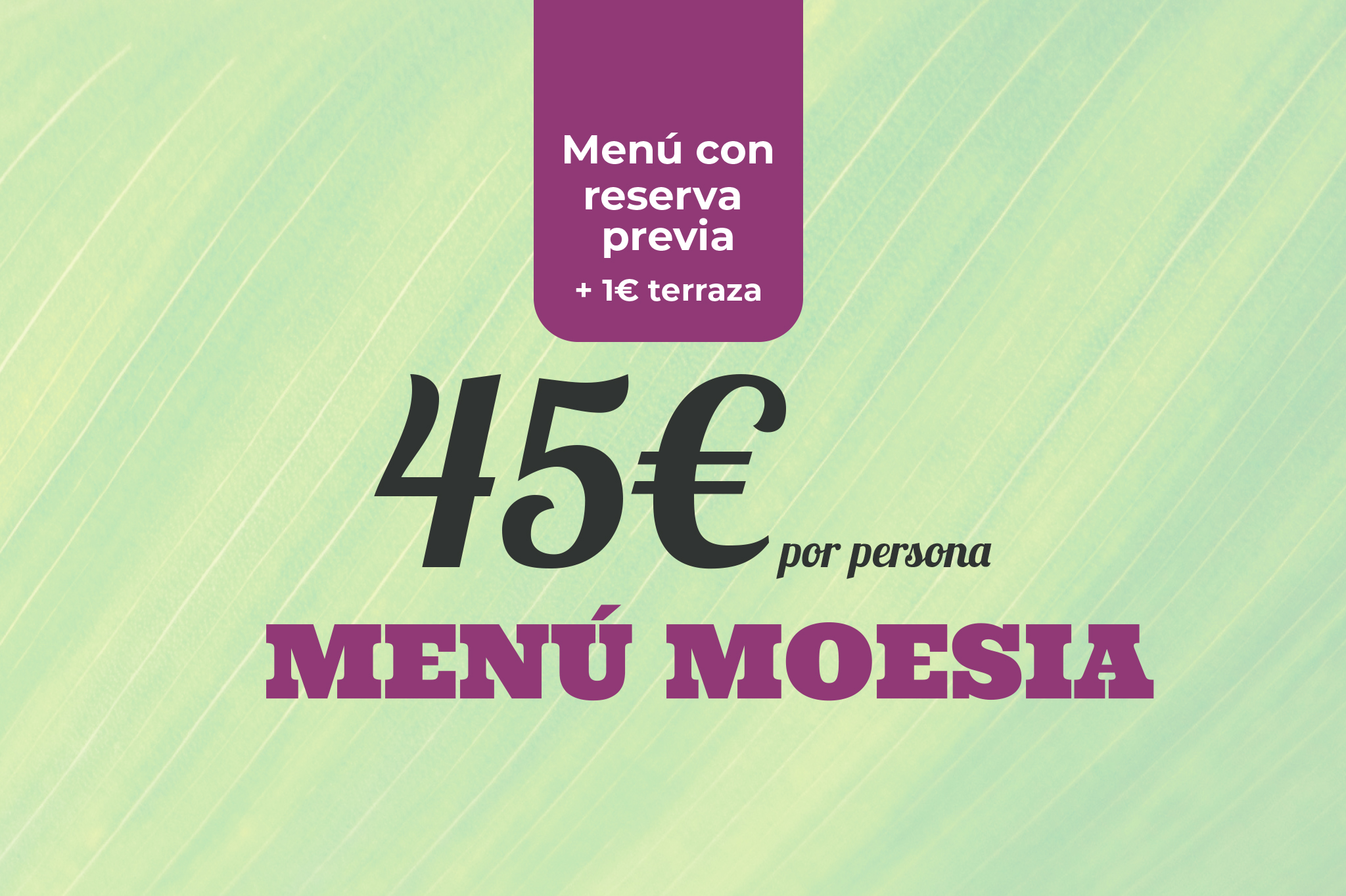 Menú bajo encargo con reserva previa. +1€ en terraza